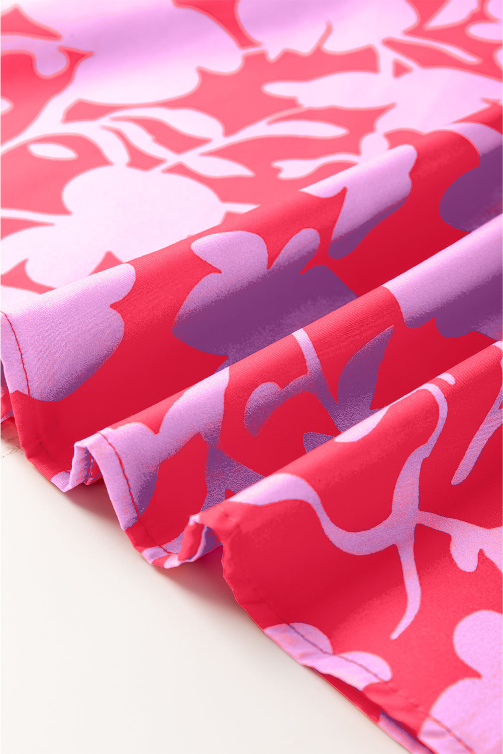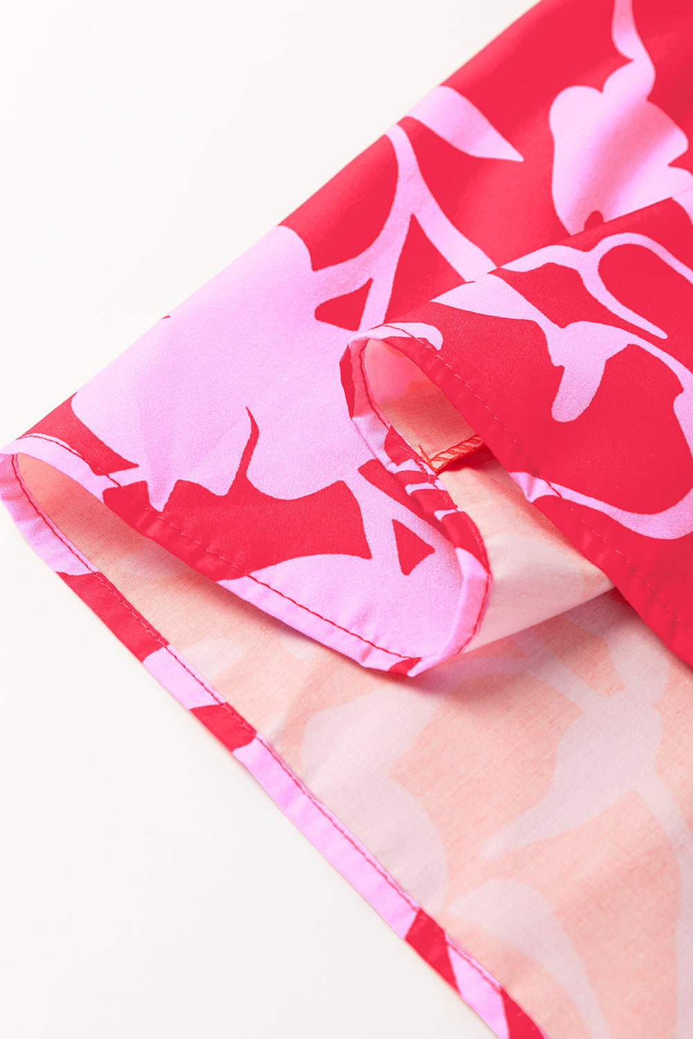 Red Floral Split V Neck Ruffled Short Sleeve Blouse Top