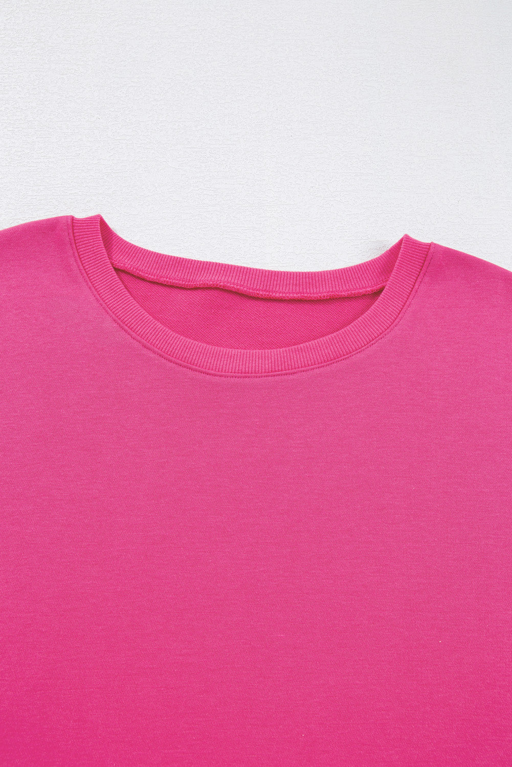 Rose Red Plus Size Printed Patchwork Sleeve Split Sweatshirt