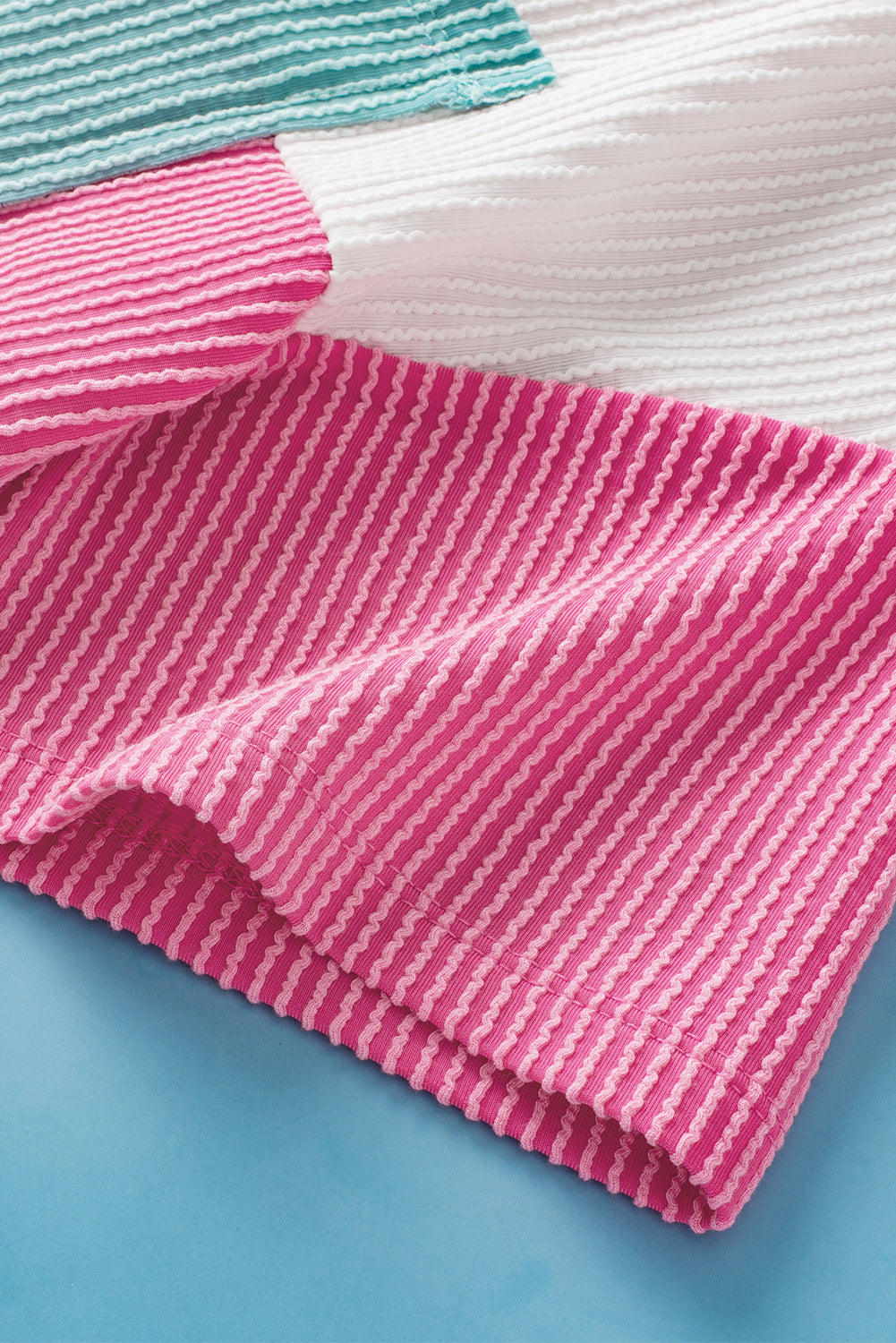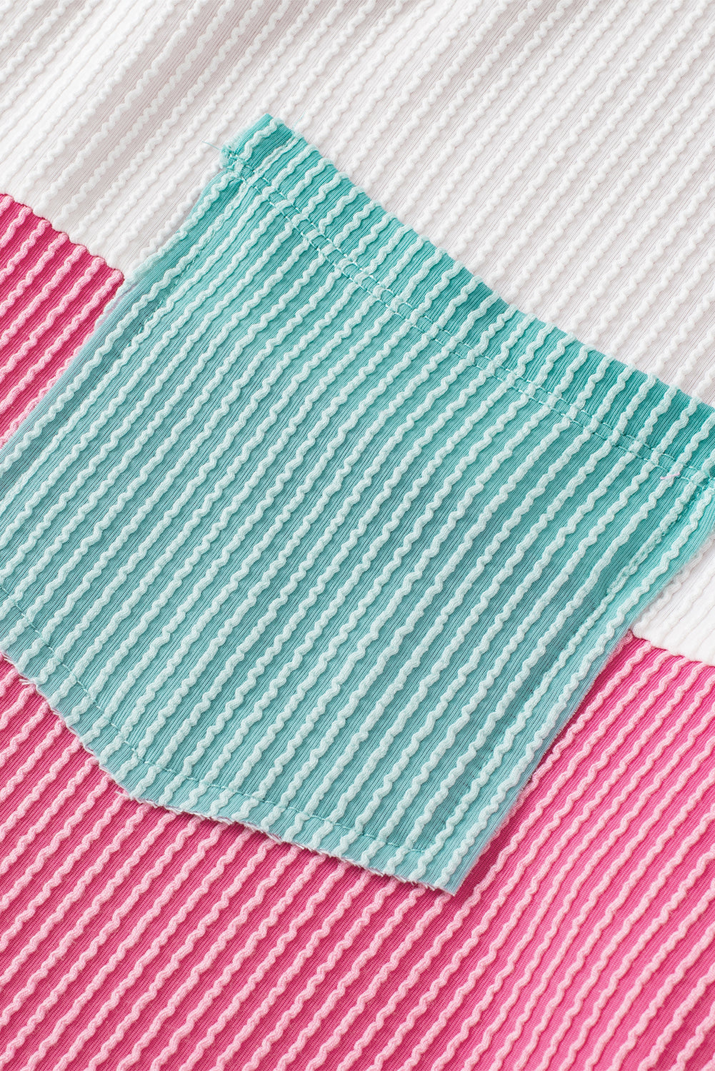 Rose Red Color Block Patch Pocket Corded V Neck Tee