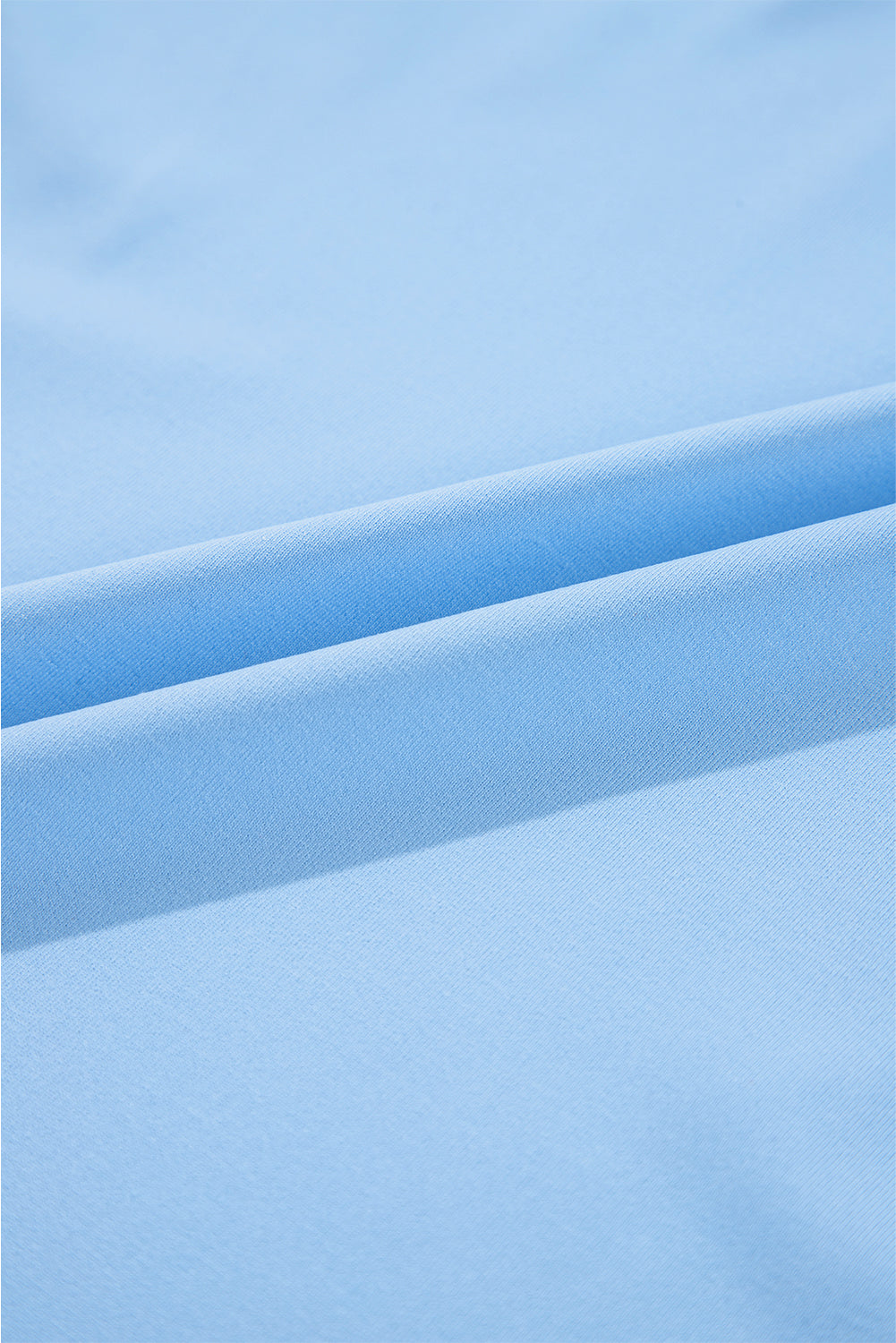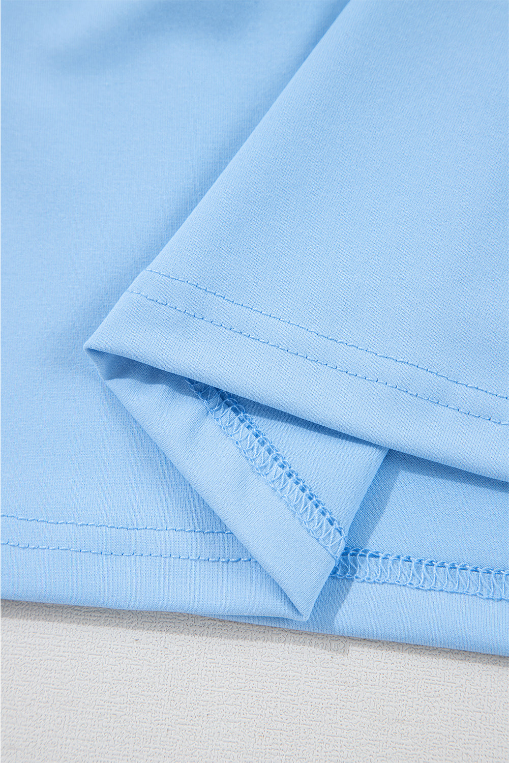 Beau Blue Floral Mesh Puff Sleeve Crew Neck Top